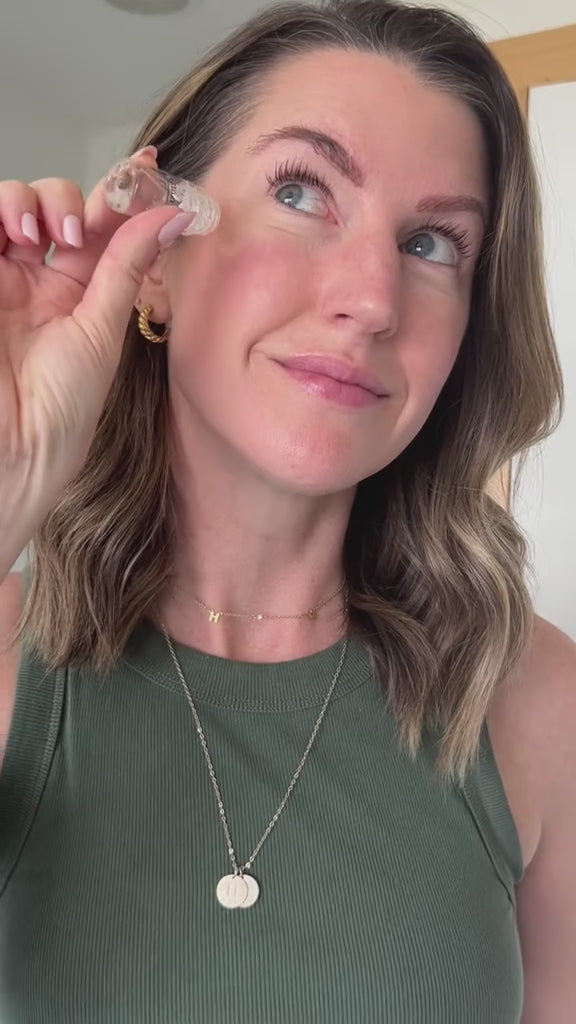 Commencez au centre du visage et progressez vers l’extérieur pour couvrir tout le visage. Faites 2/3 passages. Prenez le sérum restant dans l’appareil et tapotez-le sur votre visage et votre cou pour le laisser agir toute la